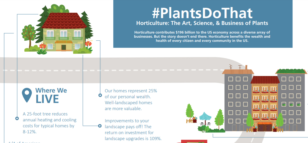 The National Initiative for Consumer Horticulture (NICH) is a group that works to educate the public on the benefits of utilizing horticulture at a greater rate throughout society to increase the overall well-being of individuals and communities alike. They have created a wonderful infographic series called #PlantsDoThat and we found a piece of their latest release that directly addressed utilizing plants in living spaces. We found this information very useful and wanted to share it with all of you. Check out what NICH has to say about horticulture where we live.